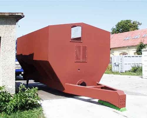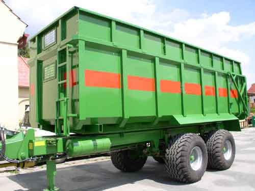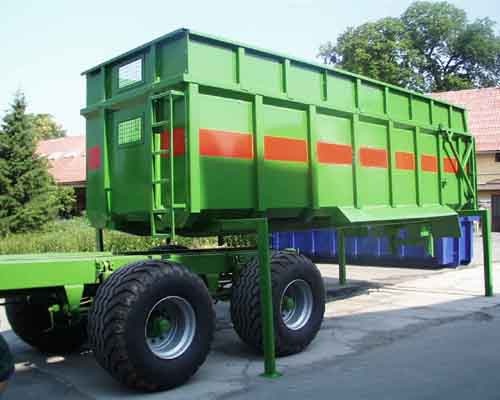 Vyrábíme rovněž kontejnery, které najdou uplatnění v zemědělství. Na dodané podvozky za traktor jsou osazovány vanové nádstavby kónického tvaru. Používají se na převoz obilí, chlévské mrvy ap. Na přání zákazníka mohou být dodávány s plachtou nebo senážovacíé nádstavbou. Vyrábí se v provedení sklopné dozadu, dozadu a vparvo nebo vlevo.